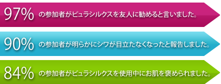 アメリカ、ヨーロッパ、アジアの多くのお客様が、ピュラシルクのご愛用者です。ピュラシルクは高額な費用や痛みを伴うことなくお肌の若返りを実現するアンチエイジング保湿クリームです。5種類の天然植物成分を配合することにより、お肌の保湿、細胞の再生、引き締めを促進します。毎日ピュラシルクを使うことにより、シワが目立たなくなり、スベスベ感のあるお肌を「実感」します!